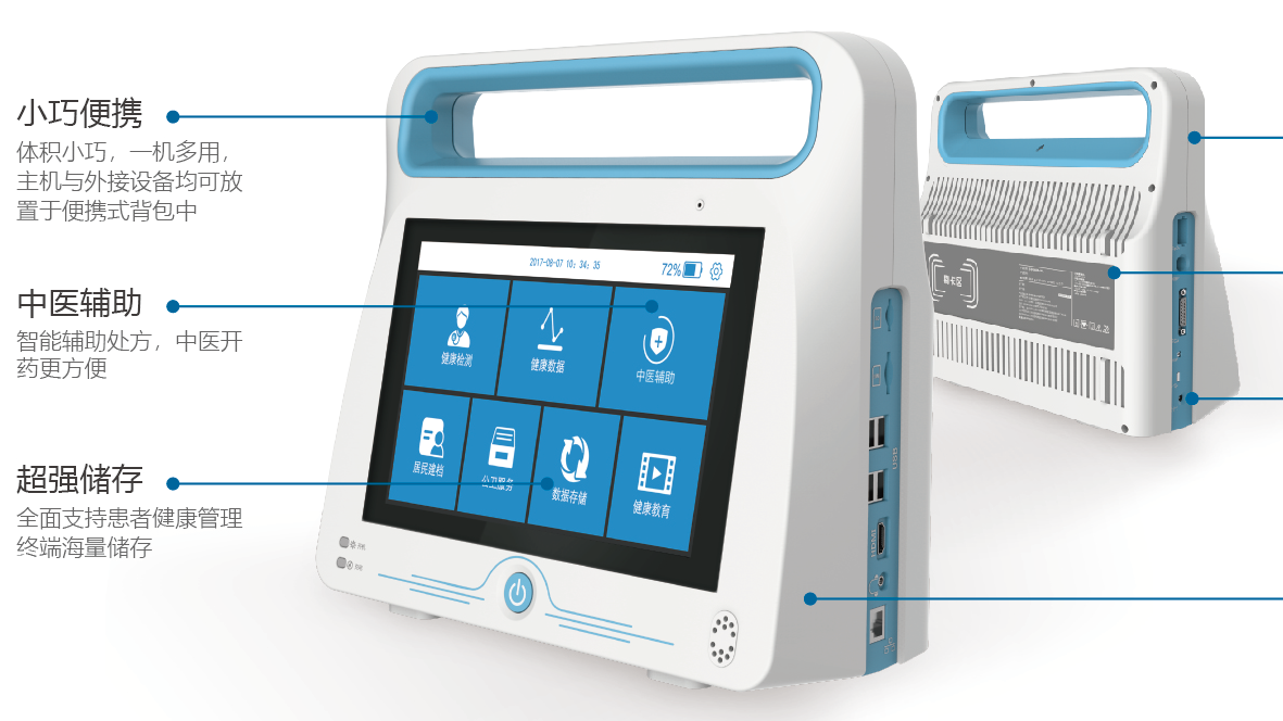 支持智能監(jiān)測設備接入,進行數據的長期追蹤、分析與評估。數據按及地方標準建立,內置中醫(yī)體質辨識,醫(yī)生可現場分析中醫(yī)體質。